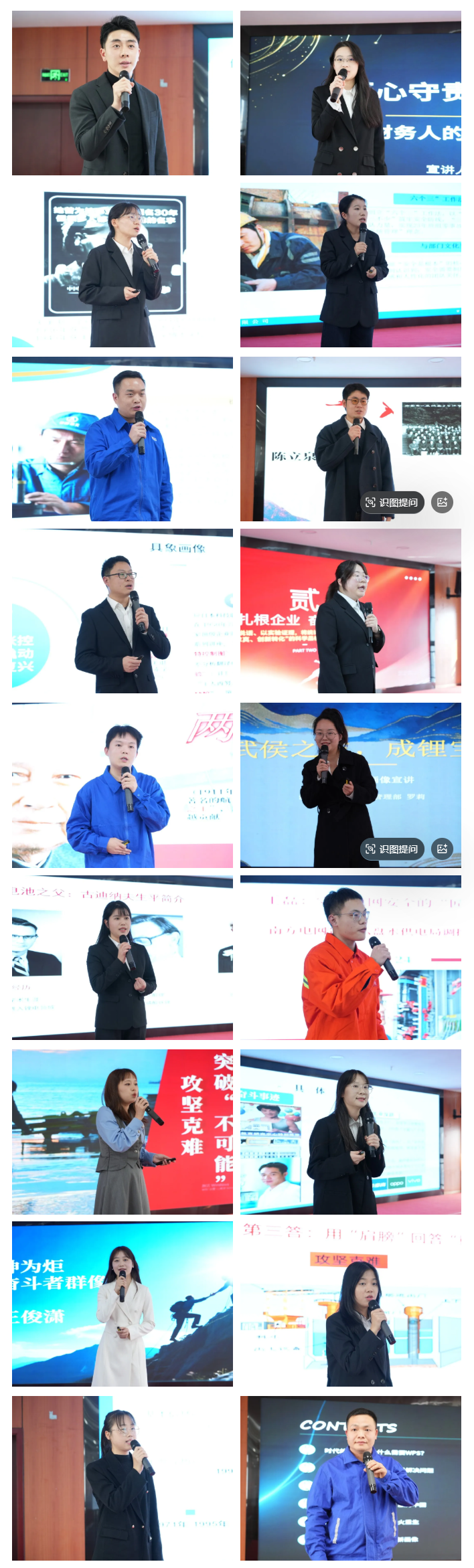 总经理办公室深情追忆人民总理周恩来的风范,通过其极致严谨、全情奉献的感人点滴,与总经办日常工作相映照,生动书写了何为“俯首甘为孺子牛”的奋斗者情怀;人力资源管理部以千古良相诸葛亮为镜,深刻提炼其“大忠、大智、大勇”的卓越品质,将其映射为锂宝人共同追求的核心素质与担当;设备管理部将目光投向中国近代工程先驱詹天佑,以其直面艰险、自主创新的精神,发出振聋发聩的“我们能否成为正极材料领航者”之问;制造部的讲述尤为贴近地气,他们在白国周、吴兴、陈家淼等一批扎根基层、精益求精的一线管理标杆身上,找到了属于制造人的朴实、坚韧与卓越精神,展现了平凡岗位上的不凡坚守;运营管理部以“WPS之父”求伯君为榜样,致敬其终一生成一事的极致专注与长期主义,在信息浪潮中坚守初心、打造民族标杆软件的传奇,深深叩击着每一位技术人的初心……每一位宣讲者都是一束光,照亮了奋斗者文化的丰富维度,十八位宣讲人发出十八声奋斗强音,奏响了公司弘扬奋斗者文化新篇章。