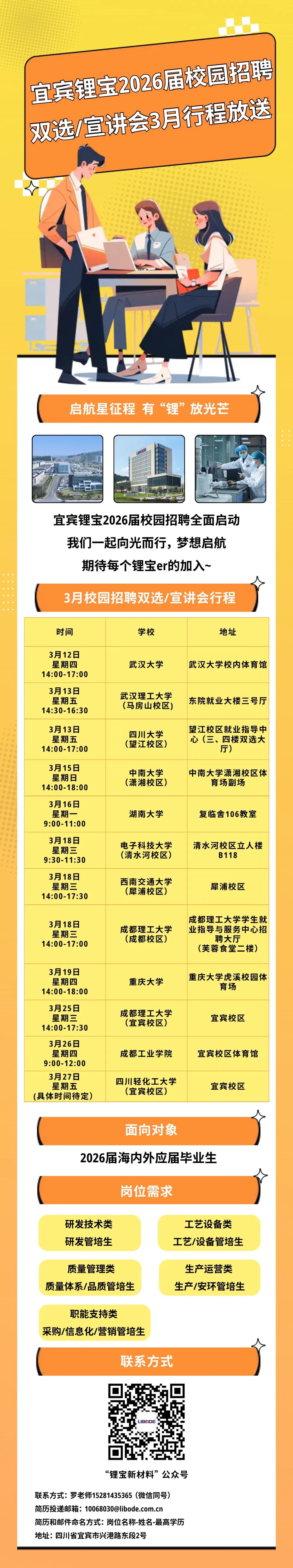 宜宾锂宝2026届校园招聘双选/宣讲会3月行程放送